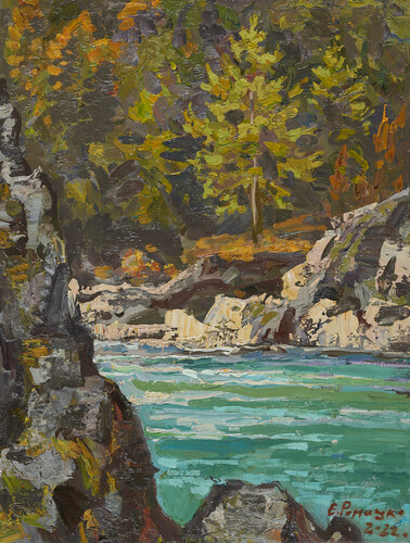 » Ромашко Е.В. Бирюзовая Катунь. Этюд.2022. х.м. 40х30. Гор...