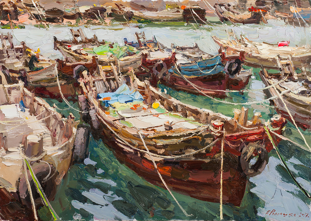 Ромашко Е.В. Рыбацкий поселок под Циндао. Старый моторолл...